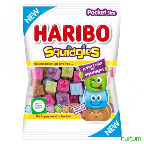 Słodkie gumy piankowe o smaku owocowym oraz coli.