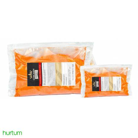Poporcjowane na jak najmniejsze kawałki (do 50 g skrzydełka z kurczaka zalać marynatą i dokładnie wymieszać rękoma (zalecamy użycie rękawiczek jednorazowych)).
