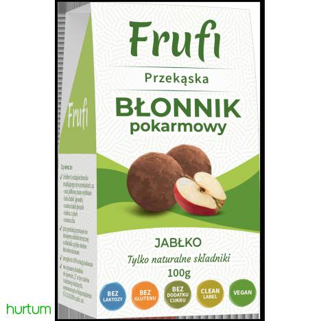 Jesteśmy producentem innowacyjnych przekąsek wysokobłonnikowych w kształcie kulek. Nasz flagowy produkt, błonnik pokarmowy posiada opinię o innowacyjności wydaną przez SGGW w Warszawie. Kolejnymi produktami, których składniki wykazują korzystny wpływ na zdrowie człowieka jest seria przekąsek SUPER... Portfolio uzupełniają przekąski będące alternatywą dla tradycyjnych słodyczy. Przekąska - błonnik pokarmowy jabłko to pyszne kulki o smaku jabłka, oblane 100% miazgą kakaową. Jako jedyny na rynku zawiera ponad 20% błonnika pokarmowego, pochodzącego z pięciu różnych źródeł. Błonnik jabłkowy pozyskiwany jest z suszu jabłkowego zwanego potocznie wytłokiem jabłkowym. Pozostałe źródła błonnika pokarmowego stanowią: łuska babki jajowatej inulina z cykorii babka płesznik nasiona chia Błonniki mają różne frakcje i inne właściwości, dlatego stosujemy różne rodzaje błonnika. NIE zawierają dodatków do żywności wymienionych w Rozporządzenie Komisji (UE) nr 1333/2008 z późn. zm. substancji słodzących barwników konserwantów przeciwutleniaczy i regulatorów kwasowości emulgatorów, środków zagęszczających, spulchniających, żelujących itp. substancji przeciwzbrylających wzmacniaczy smaku środków słodzących, nabłyszczających i innych stabilizatorów, konserwantów, zagęstników i innych NIE stosujemy obróbki termicznej a składniki są tylko mikronizowane, co pozwala na zachowanie właściwości odżywczych i pełni smaku każdego składnika. Drobne cząstki składników łatwiej przyswajane są przez układ pokarmowy i dają komfort konsumpcji. Produkt może zawierać śladowe ilości migdałów, orzechów laskowych, otrąb owsianych, kakao