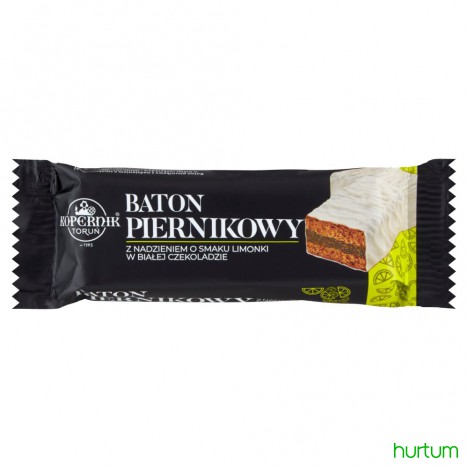 Baton piernikowy z nadzieniem o smaku limonki w białej czekoladzie.