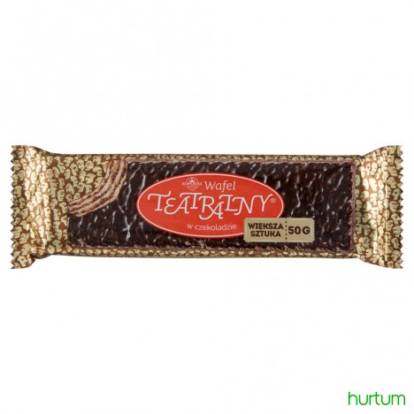 Wafel w czekoladzie przekładany kremem (52 %) orzeszkowym.