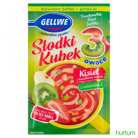 Kisiel w proszku smak truskawka-kiwi-jabłko z kawałkami owoców i witaminą C.