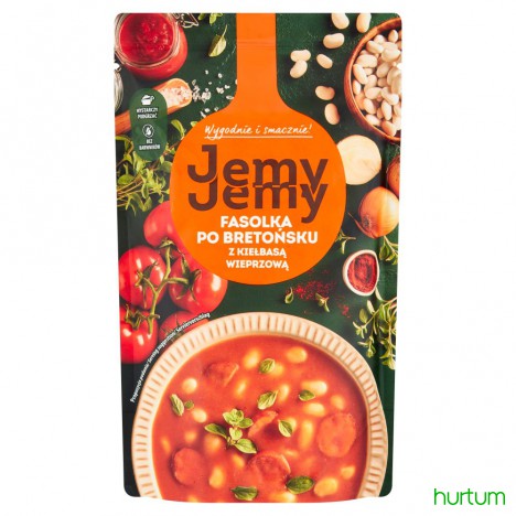 Oto zupa ugotowana specjalnie dla Ciebie. Z białą fasolą, kiełbasą wieprzową, koncentratem pomidorowym i cebulą. Doprawiona papryką i majerankiem. To inspirowana klasyką fasolka po bretońsku, której nie musisz gotować. Wystarczy podgrzać, kiedy dopadnie Cię głód. Smacznego!