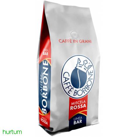 Włoska kawa ziarnista Borbone Rossa powstała ze wspaniałych gatunków ziaren kawy pochodzących z Brazylii, Kolumbii i Ugandy. 100% Robusta.