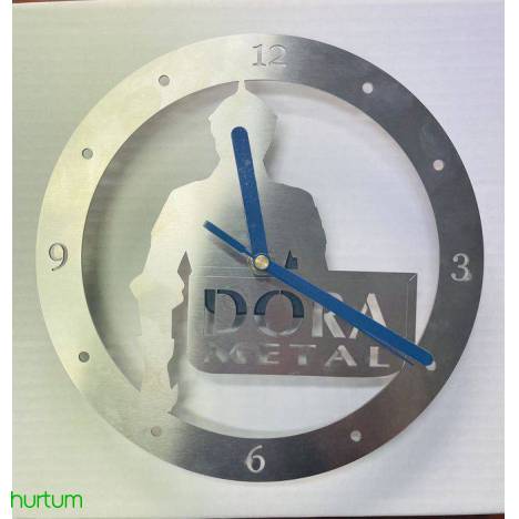Ogłoszenie dotyczy zegara naściennego o średnicy 30cm, wykonanego ze stali nierdzewnej o dowolnym wzorze.