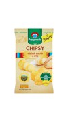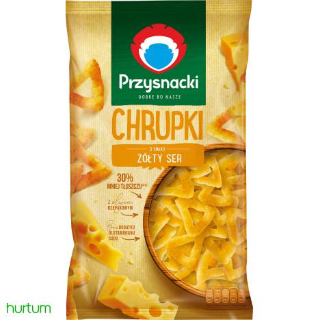 Składniki: grys kukurydziany (76%), olej rzepakowy (17%), serwatka w proszku odbiałczona (z MLEKA), sól, aromat naturalny, ser w proszku (0,7%) (z MLEKA), śmietanka w proszku (z MLEKA), emulgatory: węglan wapnia, mono- i diglicerydy kwasów tłuszczowych; cukier, kwas: kwas mlekowy w proszku (skrobia kukurydziana, kwas mlekowy); barwnik: ekstrakt z papryki.