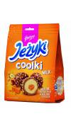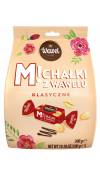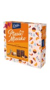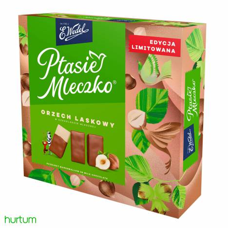 czekolada mleczna 31% (cukier, tłuszcz kakaowy, mleko pełne w proszku, miazga kakaowa, serwatka w proszku (z mleka), tłuszcz mleczny, emulgatory: lecytyny sojowe i E476, aromat), cukier, syrop glukozowy, masło, mleko zagęszczone słodzone, roztwór cukru inwertowanego, pasta z orzechów laskowych (2,2%), białko jaja w proszku, substancja żelująca (agar), koncentrat roślinny (jabłko, marchew, hibiskus), naturalny aromat orzecha laskowego, regulator kwasowości (kwas cytrynowy), substancja konserwująca (E202). Czekolada mleczna: masa kakaowa minimum 32%, masa mleczna minimum 18%. Może zawierać orzeszki arachidowe, inne orzechy, zboża (gluten).