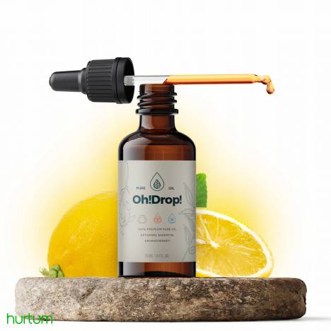 Olejek cytrynowy marki Oh!Drop! Wyróżnia się orzeźwiającym zapachem, silnymi właściwościami wspierającymi podczas problemów z układem oddechowym. Zwykle używany jest podczas chorób, ponieważ pomaga w złagodzeniu kaszlu i zatkanego nosa. Wiele wskazuje, że wspomaga procesy zapamiętywania i koncentracji. Sprzyja także zwiększeniu witalności. Zawiera niezwykle wysoką dawkę witaminy C i bioflawonoidów, dbając o naszą odporność i dobre samopoczucie.