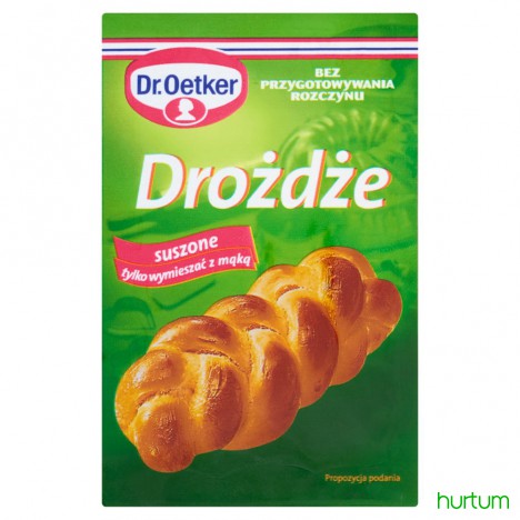 - porcja 7 g Drożdży suszonych odpowiada 25 g drożdży świeżych