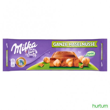 Czekolada mleczna z mleka alpejskiego z całymi orzechami.