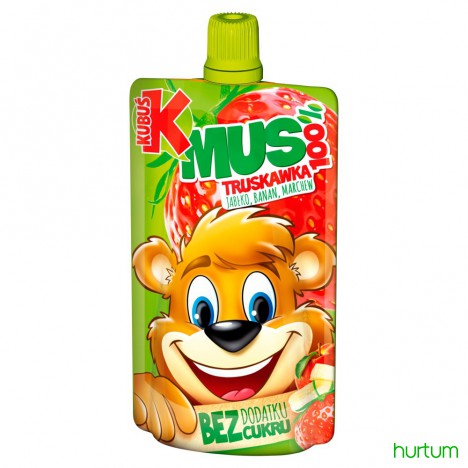 To smaczna, pożywna i naturalna przekąska w formie musu z truskawek, jabłek, bananów i marchwi, bez dodatku cukru. Jest źródłem cennego błonnika, który reguluje pracę jelit oraz witaminy C. Kubuś Mus to idealny produkt dla dzieci na drugie śniadanie w wygodnym, lekkim i bezpiecznym opakowaniu. Dzięki temu jest doskonałą propozycją do śniadaniówki, plecaka, na spacer czy na szkolną wycieczkę!