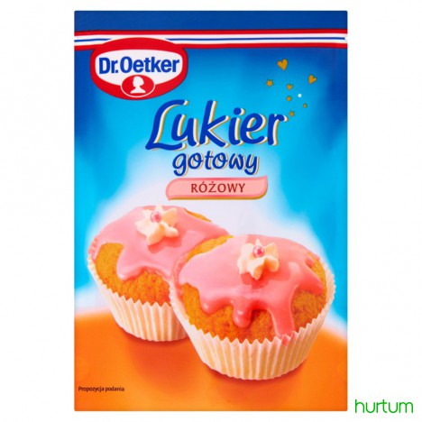 Lukier różowy gotowy z owocową nutą.
