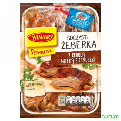 Winiary Pomysł Na… Soczyste żeberka to propozycja na wyjątkowo smaczny obiad. Dzięki załączonemu woreczkowi mięso jest niezwykle soczyste i aromatyczne.